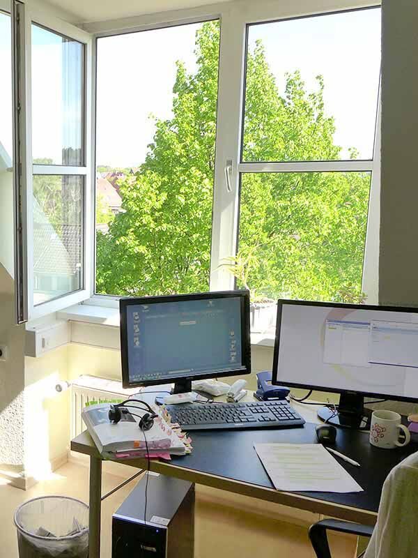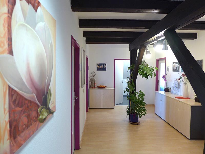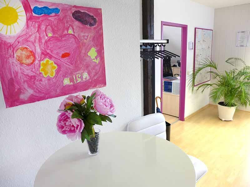 Im Gewerbegebiet hat sich eine vielfältige Nachbarschaft angesiedelt, die Umgebung ist angenehm ruhig und von Grünflächen durchzogen. So lässt es sich lernen und arbeiten: Das Fachwerk, die Giebelfenster und die hellen Möbel vermitteln Wärme und Gemütlichkeit, die moderne Ausstattung sorgt für professionelle Arbeitsatmosphäre. Der Schulungsraum in der zweiten Etage wird ergänzt durch eine kleine Bibliothek, eine Kinderecke und eine Teeküche. Für Pausen kann auch der separate Besprechungsraum genutzt werden. Wer sich einen Happen zu Essen besorgen möchte, kann sich im nahegelegenen Supermarkt etwas besorgen. Empfehlenswert ist auch der Mittagstisch im etwa 400 Meter entfernten Restaurant „Solstraatenhus“.