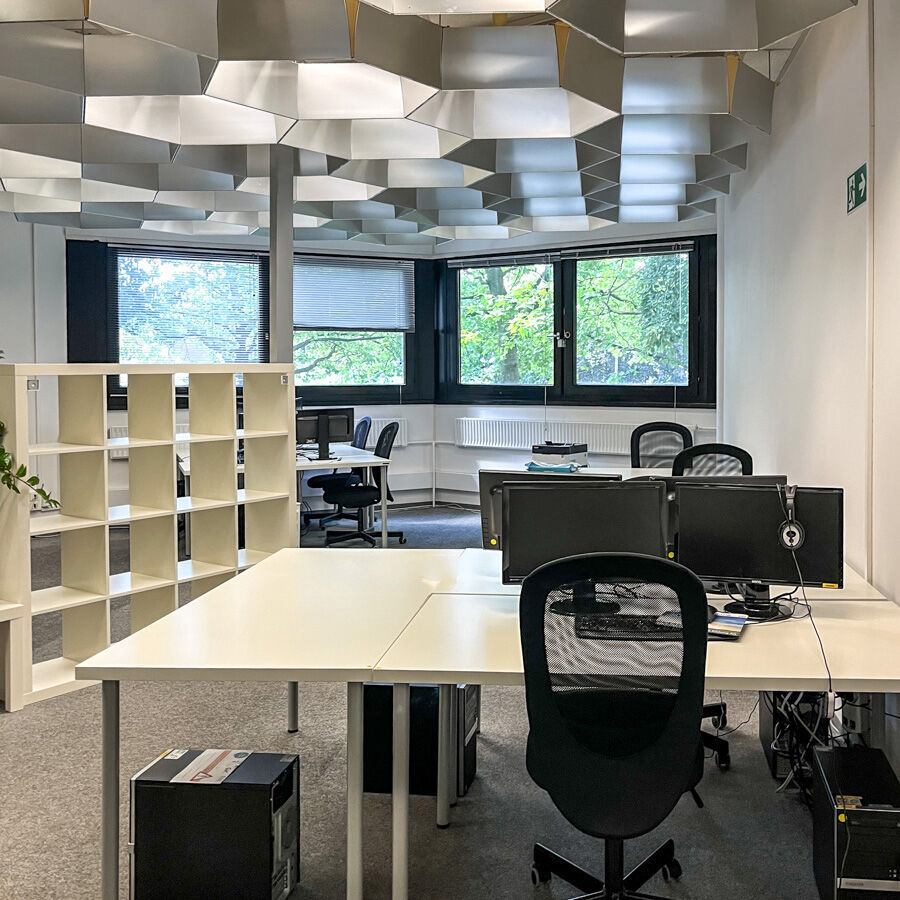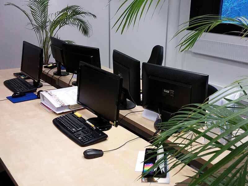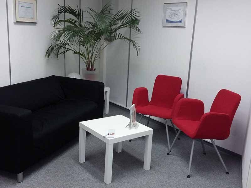 Zu unseren großzügig geschnittenen Seminarräumen im ersten Stock gelangen Sie über die Treppe oder per Fahrstuhl. Hier begrüßen unsere Mitarbeiter Sie im freundlich gestalteten Eingangsbereich, von wo aus Sie zu Ihrem persönlichen Computerarbeitsplatz gelangen. Hier findet der Unterricht zwischen 8 und 16:15 Uhr statt. Bei Fragen steht Ihnen jederzeit ein kompetenter Ansprechpartner zur Seite.