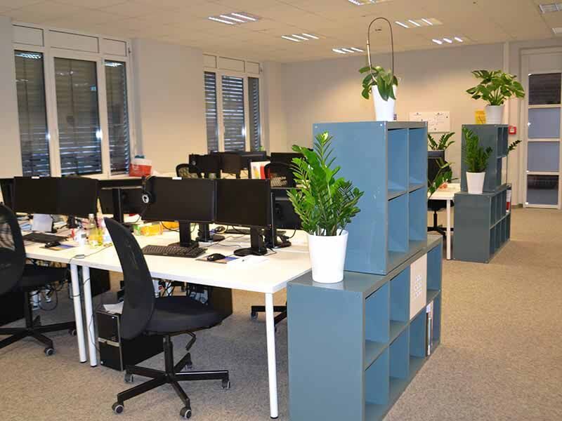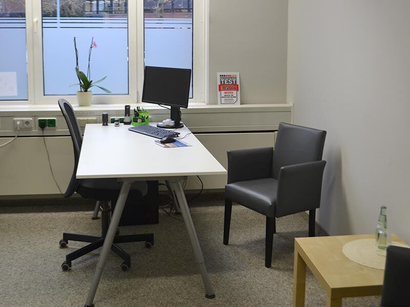 Die Räume befinden sich im Erdgeschoss des großen Bürokomplexes, der unter anderem auch die Agentur für Arbeit, das Finanzamt, den Zoll und die Bundeswehr beheimatet. Der Weg führt Sie durch einen Seiteneingang oder bei Bedarf auch stufenlos über den Hintereingang. Hell und großzügig mit hohen Decken und großen Fenstern präsentiert sich der Teilnehmerraum. Er wird von einer kleinen Küche ergänzt, in der Sie sich mit Kaffee oder Tee stärken können. Kleine Snacks können Sie im Kühlschrank lagern und in der Mikrowelle aufwärmen.